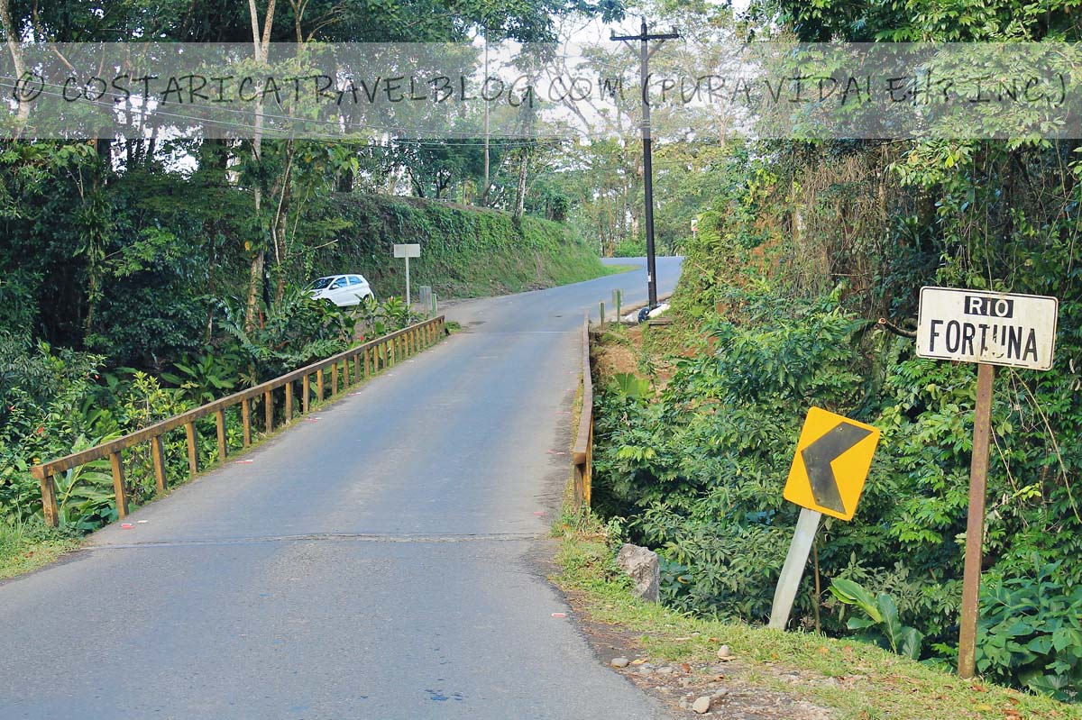 If you plan to drive yourself to and from El Salto Costa Rica, take the road that leads out of downtown La Fortuna to the south in the direction of San Ramon (Road #702). Continue driving on this road for 2-3 minutes. Along the way, you’ll pass a road to your right that is marked for the La Fortuna Waterfall (Diagonal #301 as seen on Google Maps). Approximately 50 meters after you pass that road you’ll approach a small bridge signed as Rio Fortuna. El Salto Costa Rica lies beneath the bridge. If you pass the large entrance for the tour operator Arenal Mundo Aventura on your right, you’ve just missed the bridge and will need to turn around.