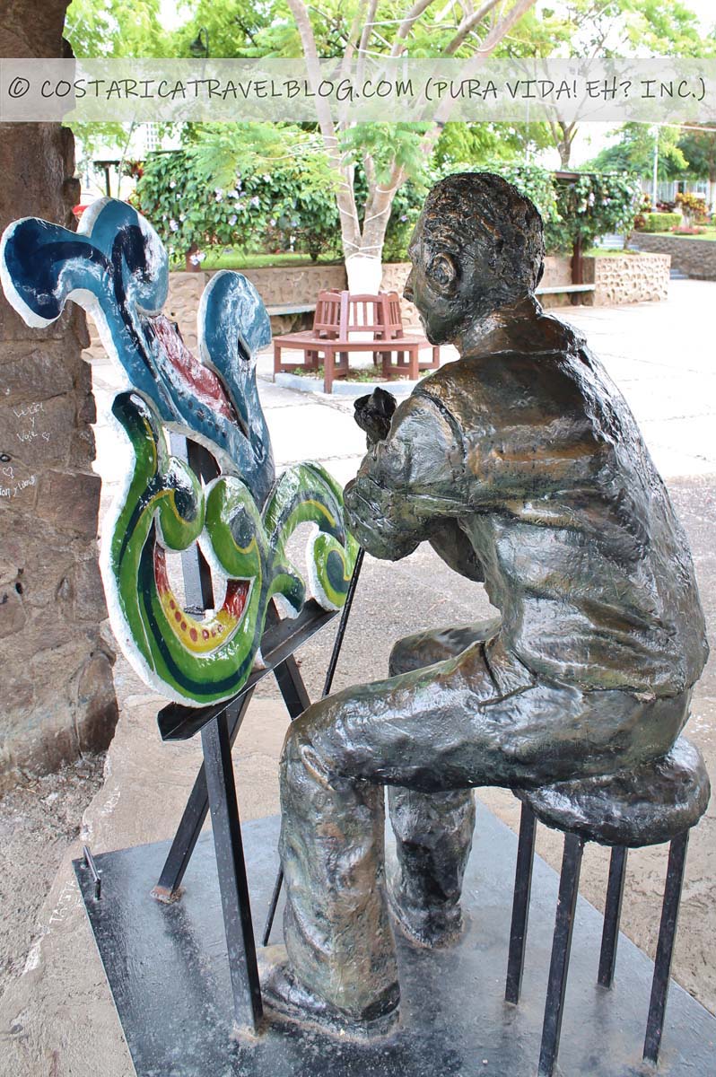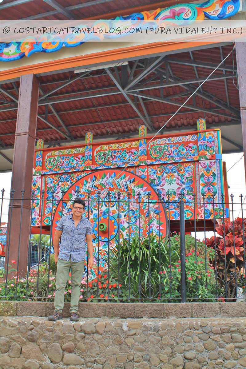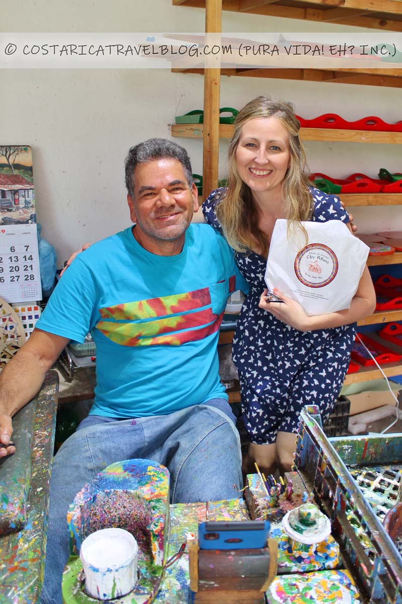 One of my favorite things to do in Costa Rica, regardless of where I travel, is meet local artists and purchase their work. Ricky and I cherish the handcrafted Costa Rican souvenirs we’ve collected to date, including the seed carving we purchased from a member of the Maleku indigenous group, masks we purchased from members of the Boruca indigenous group, paintings we purchased from members of the Cabecar indigenous group as well as non-indigenous Costa Ricans, and countless other precious pieces. I get giddy with glee whenever we visit Sarchi, Costa Rica’s artisan capital of Costa Rica, because we get to add something new to our collection and chat with the artist who created it. Not only is Sarchi a great place to visit if you want to pick up some authentic Costa Rican souvenirs, it’s also a great place to meet talented Costa Rican artists.