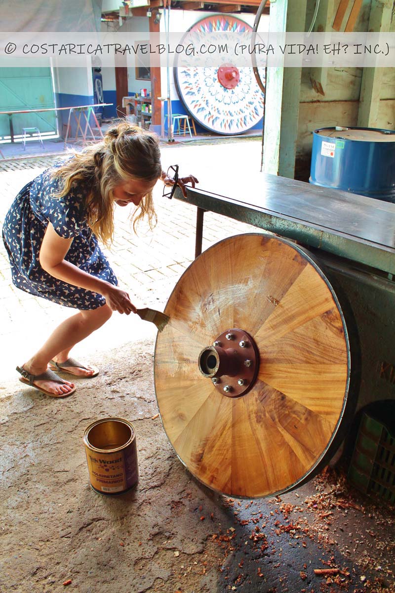 In addition to employing artists, Taller Eloy Alfaro e Hijos also employs skilled craftsmen who build functional oxcarts and decorative oxcart wheels. If you’re one of many Costa Rica visitors who are quick to write-off learning how oxcarts are made (because, honestly, who is born with a need to know this?) you’re making a big mistake, especially if craftsmanship, woodworking, art, design, architecture, engineering or history interest you.