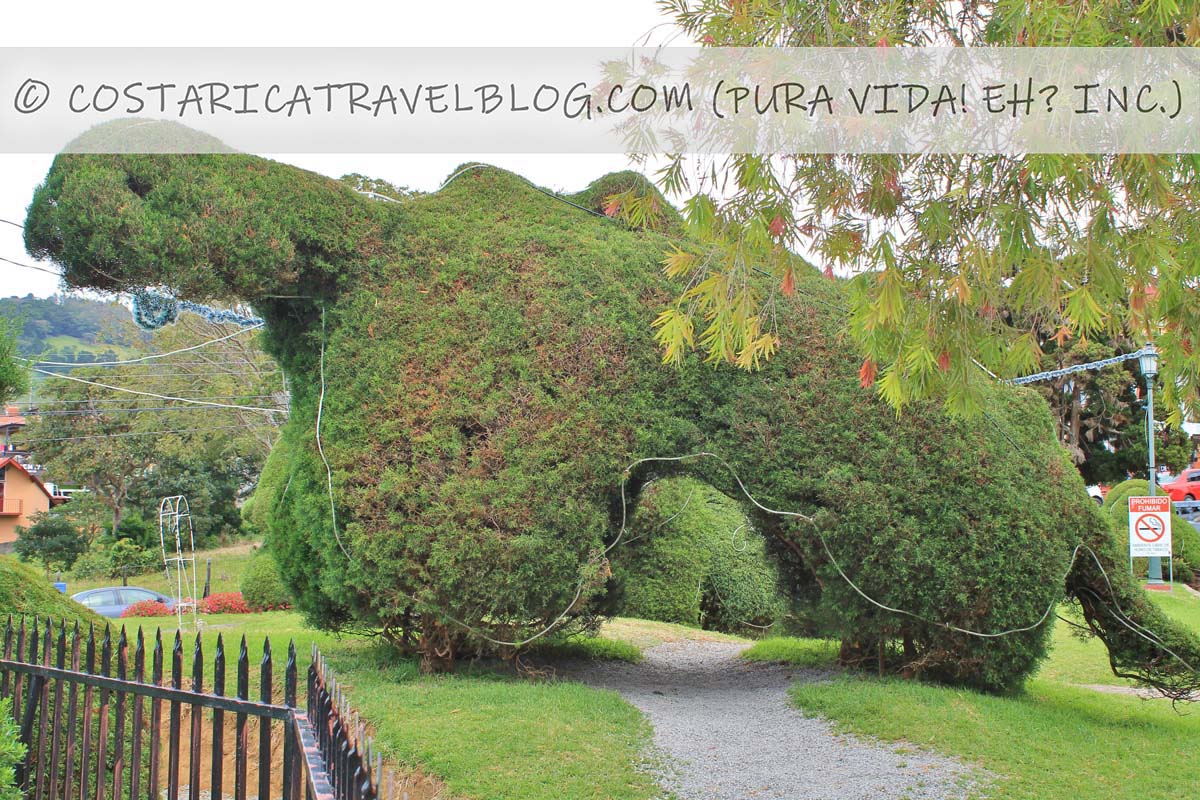 A treat to see firsthand is the amusing topiary art that livens the central park in the center of Zarcero (also referred to as Alfaro Ruiz). Maintained by a local resident, you’ll find all kinds of things carved into the park’s shrubs from animals, birds, dinosaurs, and human figures to abstract designs and a replica of the Parroquia San Rafael Arcángel (Saint Rafael Arcángel Parish), the church that towers over the park’s east side. It’s fun to walk through the row of carved arches that runs from Zarcero’s main street (Road 141) to the steps that lead to the church’s front entrance. It’s also nice to take a stroll around and admire the park’s other landscaping, which includes gardens of ornamental grasses and blue-hued hydrangeas.