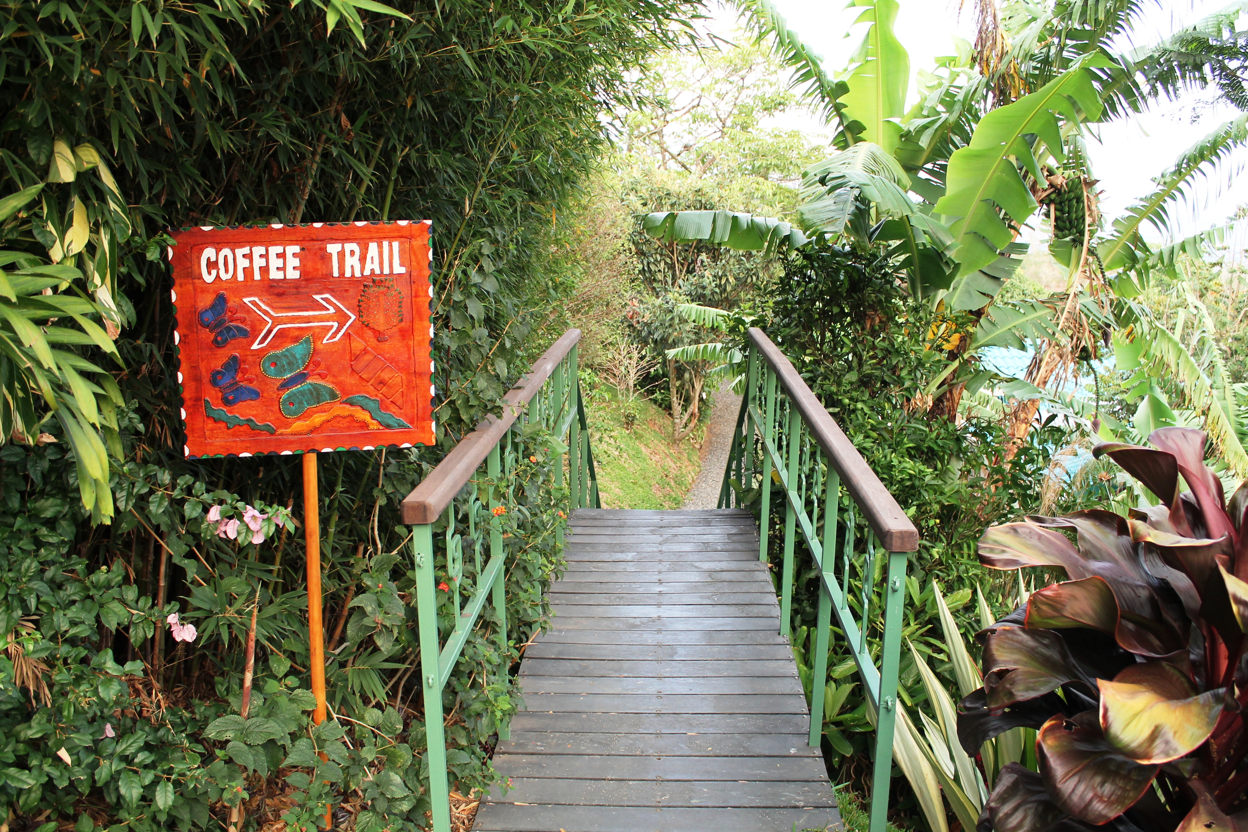 In addition to a great night’s stay (the bed in the king bed junior suite room we stayed in was one of the most comfortable we have ever slept in throughout our travels around the country), visitors receive a complimentary breakfast, free SJO airport transportation, and access to the hotel’s on-site trails. Sure, these amenities may be standard offerings at many hotels these days, however here’s where Hotel Buena Vista goes above and beyond. The hotel’s airport shuttle service does not run on a particular schedule, instead they allow travellers to choose their own preferred departure time ensuring that visitors arrive at the airport according to their own travel plans. The on-site trail system is more than simply a flattened path crossing the hotel’s property–it is a nicely designed trail of plants (coffee, anyone?), trees (can you spot the chewing gum tree?), and flowers, supplemented by informational signs that educate trail visitors along the way. As for breakfast, although a typical continental breakfast is served, the hotel is kind enough to offer snacks to go for those travellers who leave during the early morning hours (such as those travellers who have tour reservations requiring early morning pick-ups)–a nice and much appreciated touch.