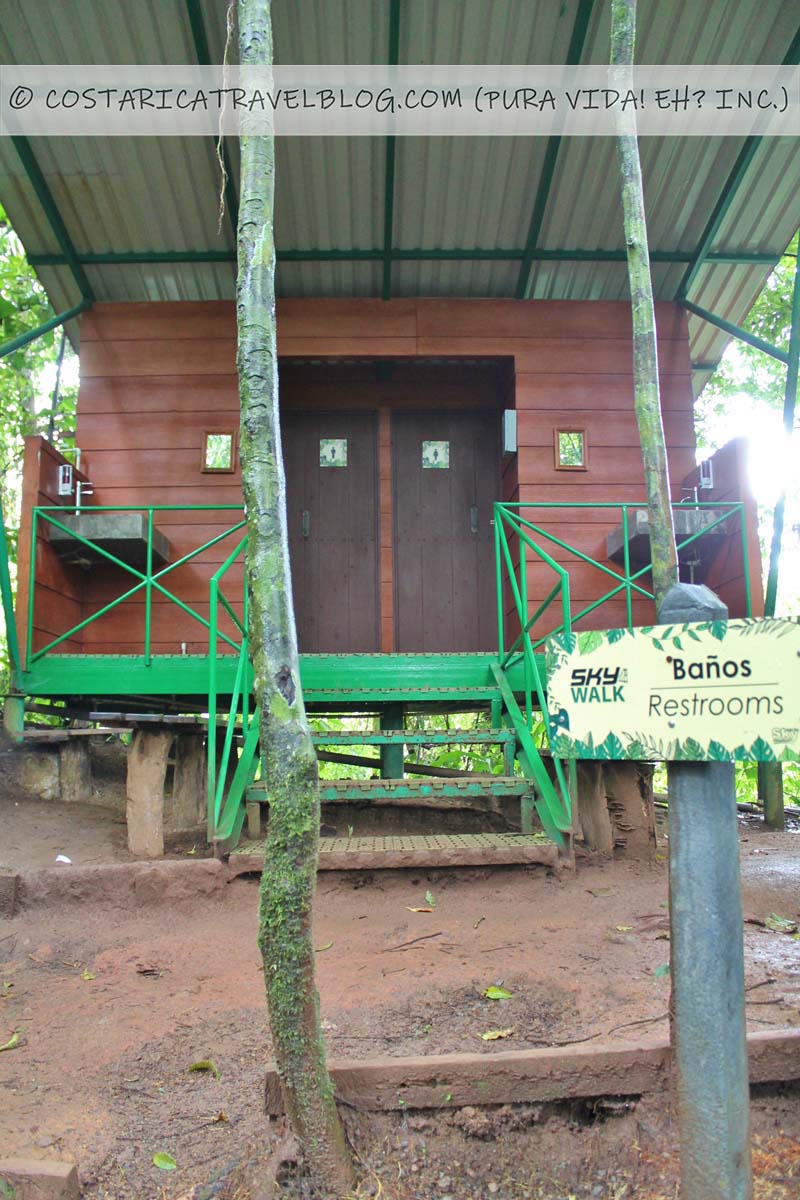 At Sky Adventures’s Arenal Park, bathrooms are provided at both the entrance/reception and partway along the nature trail (between the second and third bridges).