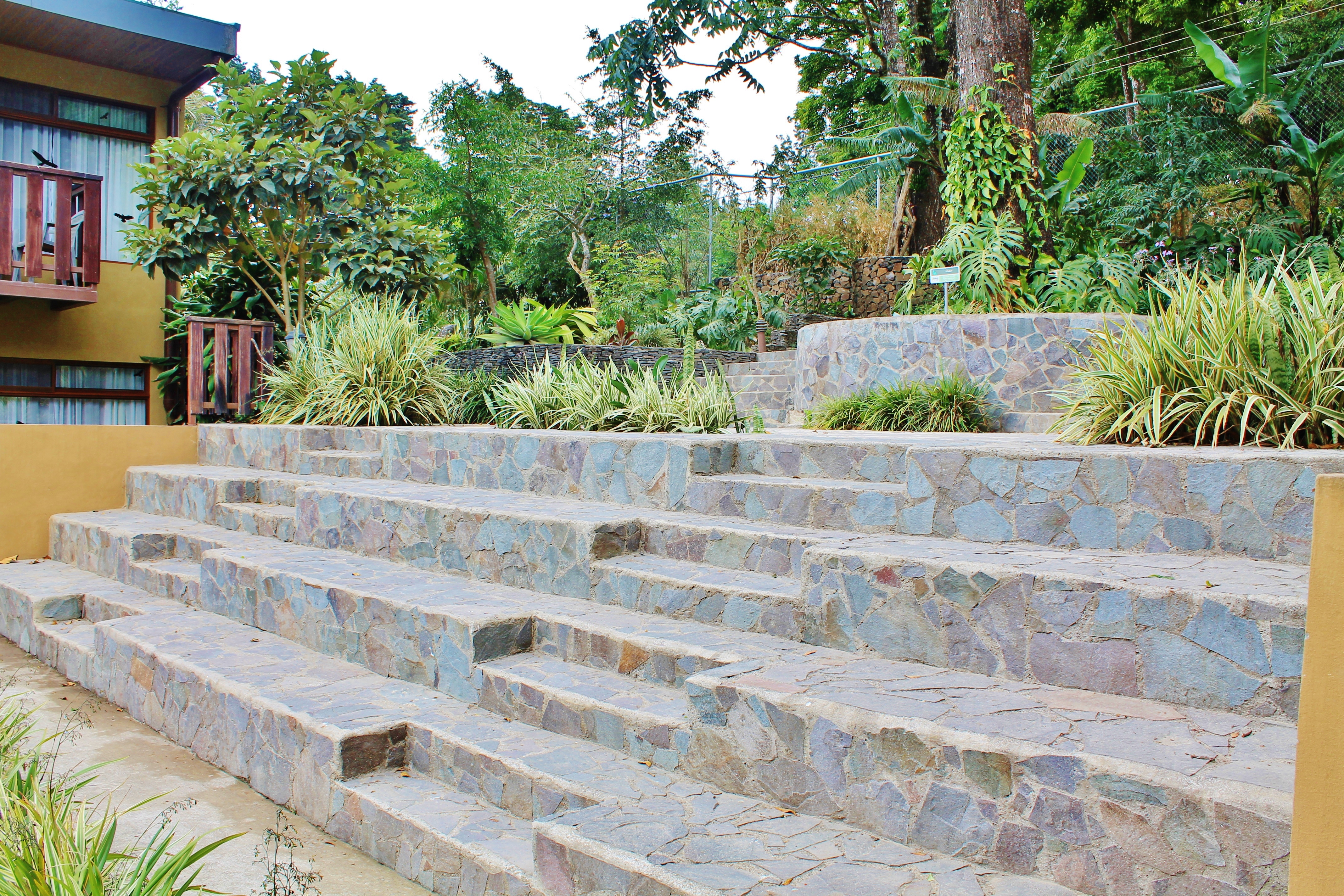 Want to know the absolute best thing we do whenever we visit Monteverde? We love to take it all in. Wafts of dew in the air. A monkey troop’s howls. The rustling of plant leaves. A hummingbird afloat midair. The buzz of a cicada’s mating call. The brilliance of a torch flower’s light. The speed of a gecko’s sprint. The warmth of a beam of sunshine broken through the rainforest canopy. Although beauty is abundant throughout Costa Rica, Monteverde is bursting with it in some of its tiniest and most unrecognizable forms as a result of the sheer volume of biodiversity that exists in the region. At the Monteverde Country Lodge, we experienced much of it, including visits from countless species of birds, a natural soundtrack stemming from wildlife and critters that inhabit the neighbouring Monteverde Biological Cloud Forest Reserve and Children’s Eternal Rainforest Bajo Del Tigre Reserve, a colourful sunset over the roof of the lodge, and the aroma and taste of locally-roasted coffee produced by one of the country’s best plantations. We loved roaming about the hotel’s property, admiring its many plants, flowers, and trees, and educating ourselves using the flora information placards provided. As if the hotel’s grounds weren’t peaceful and pretty enough, the natural stonework and trickling ornamental water fountains scattered throughout the property’s gardens reminded us of nature’s glory.