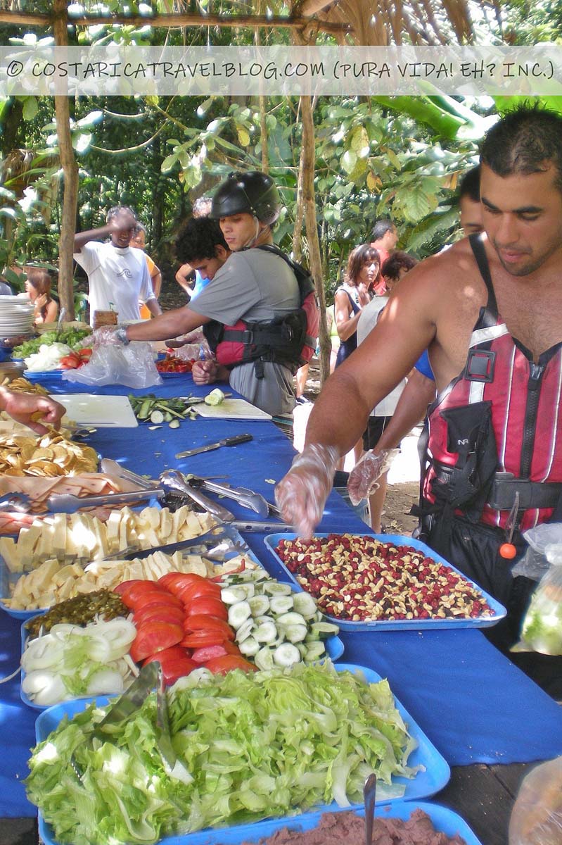 lunch served along the Pacuare RiverRicky and Nikki; rafting the Pacuare RiverPacuare River canyonswimming in the Pacuare River canyon
