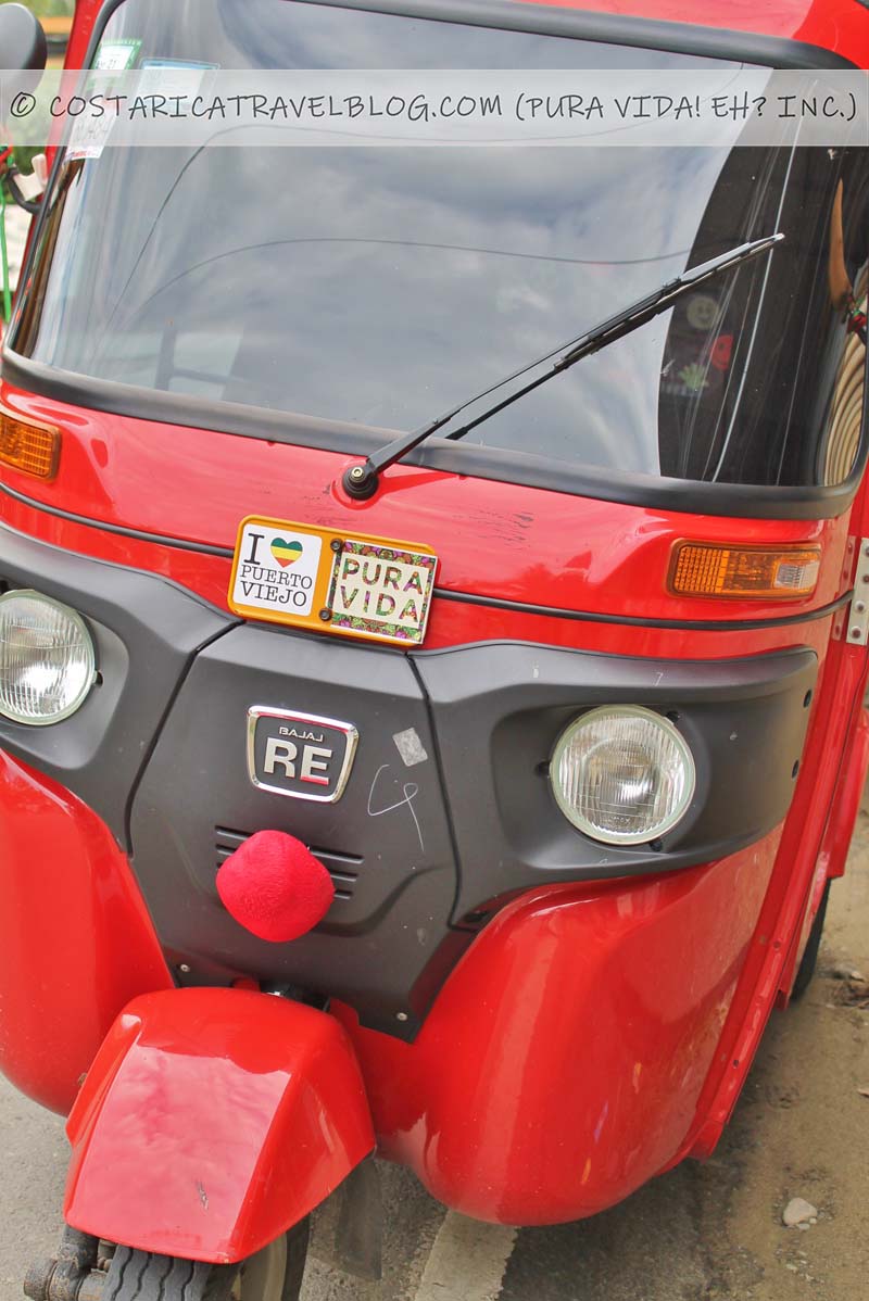 Puerto Viejo is one of few towns in Costa Rica that has tuk-tuks. These red, three-wheeled, auto rickshaws can be hired like taxis to take you wherever you need to go around the Puerto Viejo area. You’ll see them buzzing around the town’s downtown core.