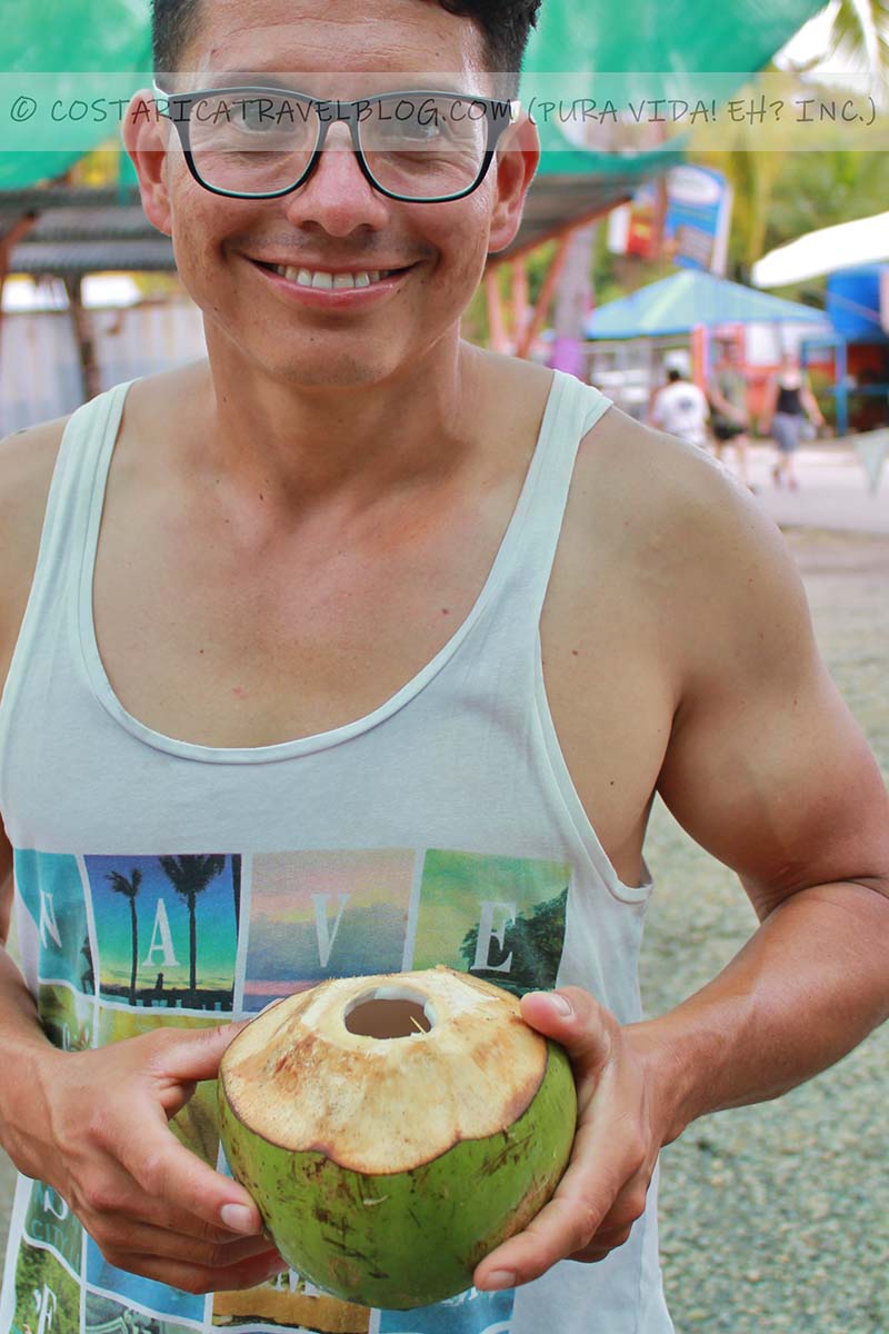 Nikki; buying pipa fria from a vendor on Playa Hermosa (Guanacaste)Ricky; drinking pipa friapipa fria for sale at the farmers market in Quepos (Manuel Antonio)