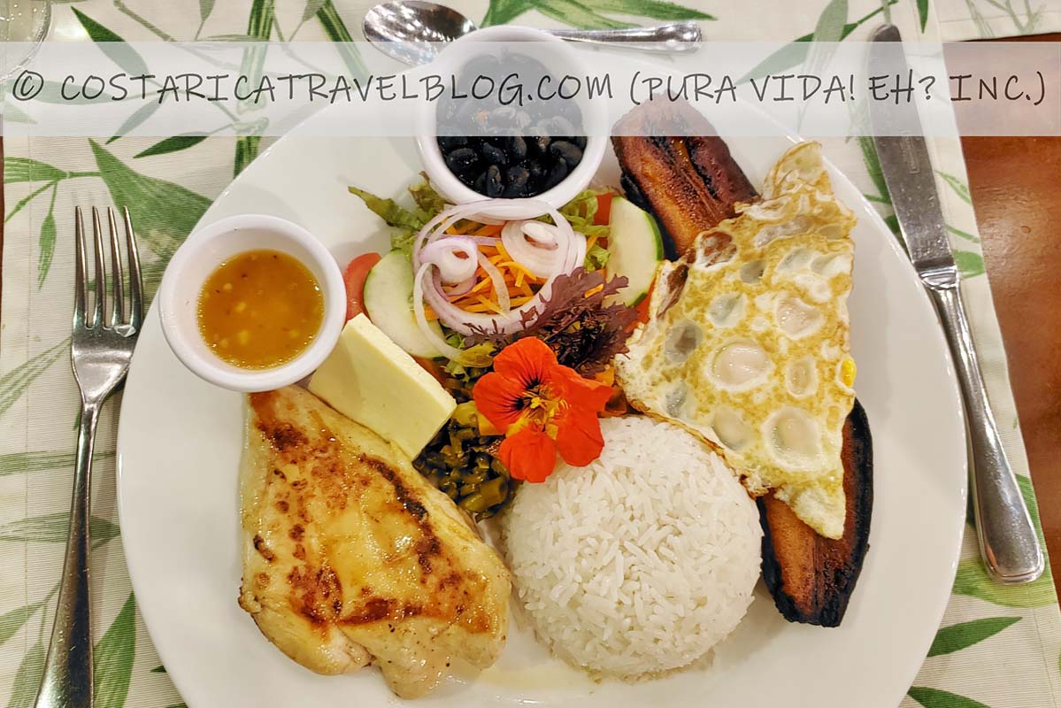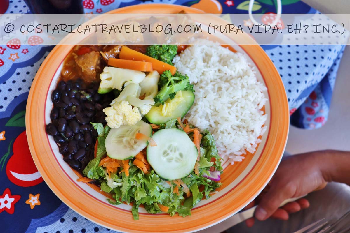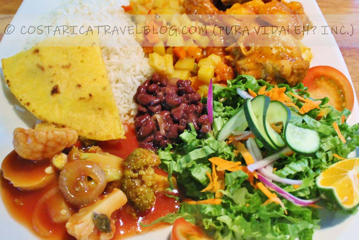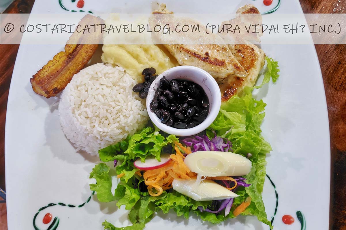 Where to try arroz con pollo, carne, cerdo, pescado, or vegetales in Costa Rica