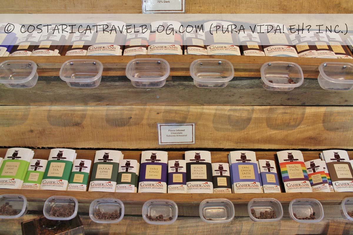 The best way to taste raw, unprocessed cacao is to participate in a chocolate tour. Several destinations in Costa Rica offer them, including La Fortuna, Monteverde, Puerto Viejo de Talamanca, Puerto Jimenez, rake Bay, and Brasilito, to name a few. If you want to eat chocolate (i.e., the processed end form of cacao), you can pick up chocolate bars made in Costa Rica from a variety of grocery stores, cafes, souvenir shops, and chocolate tour offices.
