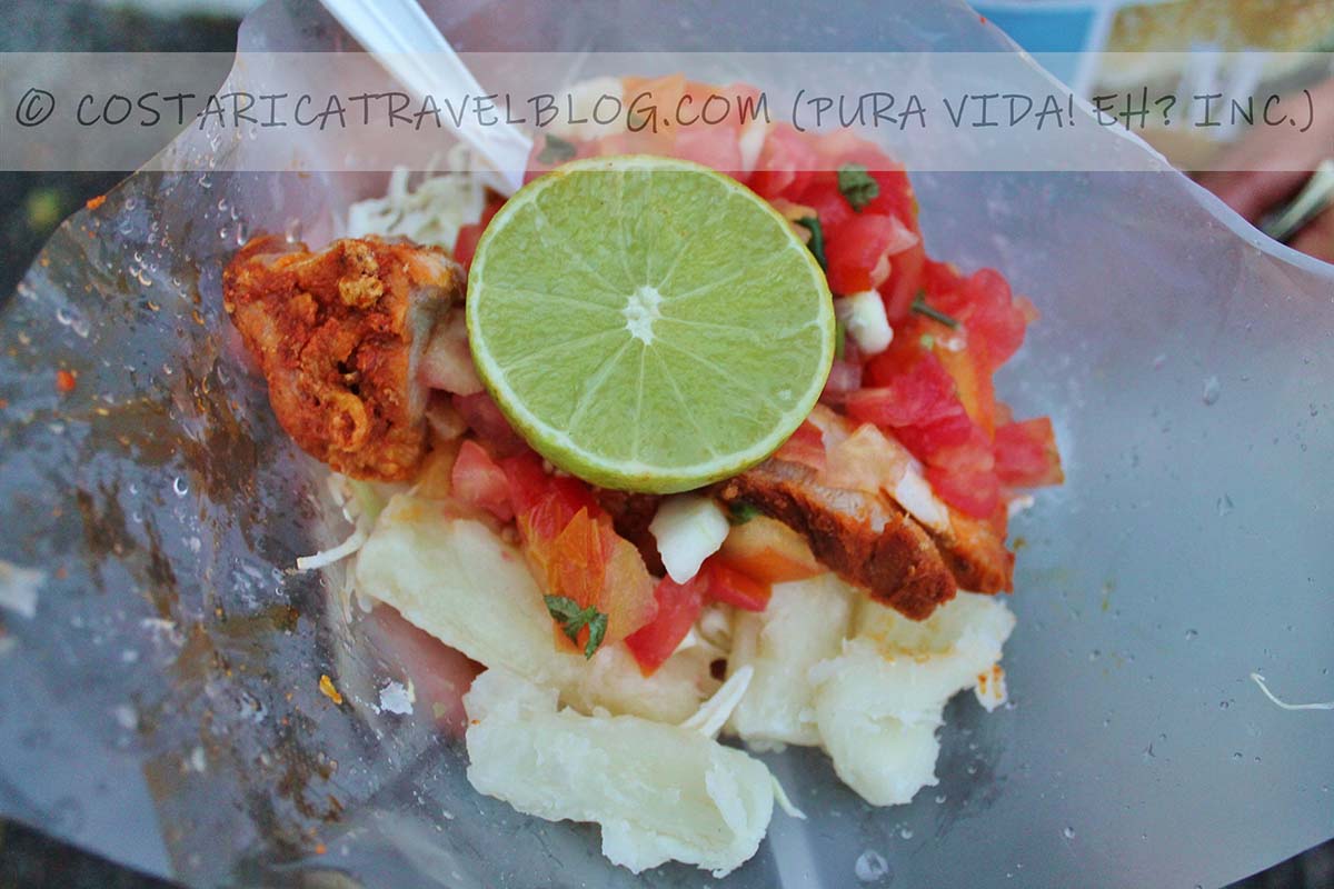 Want to see chicharrones (more info on those above), pico de gallo (more info on that also above), and the vegetables cabbage and yuca (cassava) combined in one dish? Your wish is our command! Try a vigoron. This street meat compilation is one of the best Costa Rica has to offer.